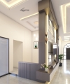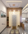 Di sisi lain, area mushalla didesain menyatu dengan konsep rumah, menghadirkan ruang ibadah yang tenang dan berestetika. Panel dinding bermotif geometris islami dengan pencahayaan LED tersembunyi menampilkan keindahan modern tanpa meninggalkan nuansa spiritual. Aksen kayu alami dan pencahayaan lembut membuat suasana ibadah terasa lebih khusyuk dan nyaman.